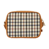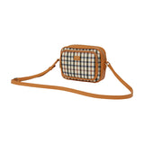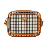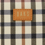 This is a classic and compact archive inspired House Check crossbody bag, with brown leather trim detailing and embossed DAKS logo. This crossbody features one main interior storage compartment, aswell as an additional small exterior compartment, both accessible by zips.