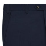 The Jack- Travis is a classic drop 6 single breasted suit, featuring a navy plain pure wool design. The single breasted jacket features a two button fastening and straight flap pockets. The trousers have a flat fronted style.