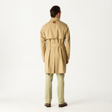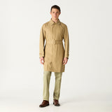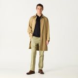 Our iconic House Trench has all the DAKS brand hallmarks of a wardrobe staple, with House Check printed under collar, vicuna viscose twill sleeve lining, House Check cupro half lining and classic shoulder detail. Made from one hundred percent breathable silk touch cotton fabric, the piece is understated yet with a plethora of functional features, such as an inverted pleat swing back and adjustable belted waist for comfort and ease of movement, high collar to protect against the elements, two handy button closure welt pockets and oversized cuff adjusters. In addition to this, it features bio resin horn buttons that are neatly disguised away under the concealed placket and a storm flap at the back, all of which make it ideal for the work commute.