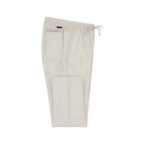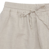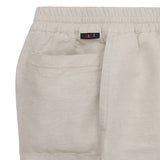 The Tyson is a casual light weight linen and cotton blend trouser in stone. The trousers include an adjustable elasticated waist band, slanted side pockets and open back pocket detail