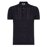 DAKS X John Smedley Pointelle Housecheck Polo Shirt - Navy