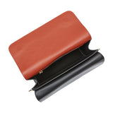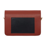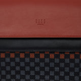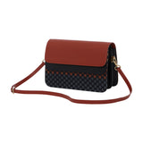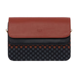 Mini crossbody bag featuring transfigured anniversary check detail in navy and rustic orange, with contrasting leather tan detail and removable shoulder strap