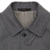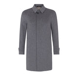 This tailored single-breasted overcoat is crafted from an Italian woolen blend, providing a sophisticated brushed texture. This is complemented by a peacoat collar with a single-button fastening, slanted front pockets, and a luxury viscose lining.