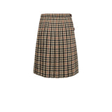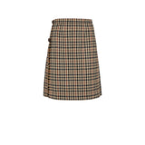 Inspired by age-old heritage designs and fabricated using the traditional DAKS House Check, this kilted skirt is perfect for the modern preppy look. Made in the UK, this unique skirt features leather buckle straps and sits just above the knee.