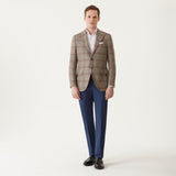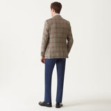 Taking reference from a traditional hunting jacket, this jacket is an updated and modern take on a British classic. With this in mind, the jacket features signature details including pleated pockets, a double vent and an extended lapel that acts as a wind tab. The cloth is in a sage green with white yarns showing through the shadow over check.