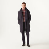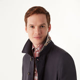 The Oskar is a traditional water-repellant raincoat in navy blue. A timeless and elegant staple, this coat will be crucial in navigating you through the changing seasons ahead. Cut to a flattering single-breasted silhouette, it's insulated for warmth yet maintains a lightweight structure. This coat features signature House Check collar detail, along with functional details including wind tab for those breezier days.