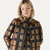 Our intricate Geo Check coat consists of beautiful branded shell buttons and bracelet length sleeves. The pattern of the check has been skilfully matched all over and constructed with a tubular collar. Wear this coat with our Jacquard dress for the ultimate coordination.
