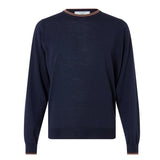 DAKS X John Smedley House Stripe Crew Neck - Midnight Blue