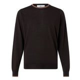 DAKS X JOHN SMEDLEY HOUSE STRIPE CREW NECK - BROWN