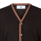 This classic v neck cardigan, knitted in England from John Smedley’s Merino Wool, features the iconic DAKS House Stripe around the neckline and cuffs. A timeless and comfortable choice for your everyday wardrobe.
