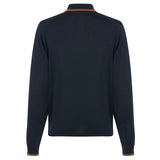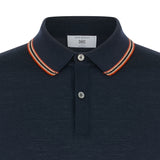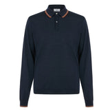 DAKS X John Smedley House Stripe L/S Polo - Midnight Blue