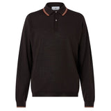 DAKS X John Smedley House Stripe L/S Polo - Brown