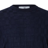 DAKS X JOHN SMEDLEY HOUSECHECK CREW NECK JUMPER - INDIGO