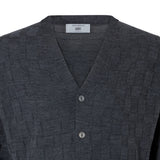 DAKS X JOHN SMEDLEY HOUSECHECK V NECK CARDIGAN - GREY