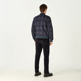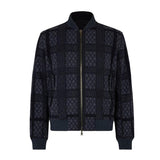 Get prepared for autumn with this exclusive geo check navy blue bomber jacket. Being fully reversible it enables versatility, making this the perfect addition to your wardrobe to transition from season to season. The jacket is designed with a full zip fastening, ribbed collar, ribbed cuffs, ribbed hem and flap pockets with snap fastening on both sides. Made in Italy using our 130th anniversary signature Geo Check print from 100% woollen fabric on one side, with classic MA-1 styling on the reverse, this luxurious piece is ideal for the smart casual look.