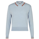 DAKS X John Smedley House Stripe Collared L/S Top - Blue Haze