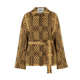 Make a statement by wearing our jacquard Geo Check belted coat from our capsule collection. The dropped shoulder makes it a relaxed comfortable fit with the belt allowing it to sculpt the body for a flattering look. The contrast of colours makes it an impressive coat to complement your autumn and winter wardrobe. Made purely from wool, fully lined and with a large collar, this coat integrates practicality, comfort and style together. The Italian fabric and Geo Check design combined, undoubtably exude elegance.