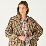 A new print this collection is our pencil House Check design, a take on our classic House Check. The abstract pencil pattern makes the coat a bold seasonal statement. Crafted in Italy with Italian woollen blends, the jacquard classic check in our house colours complement autumnal shades perfectly. Fully lined with side pockets for practicality and featuring vintage exaggerated lapels, horn logo buttons and buckled cuffs for an impeccable look.