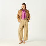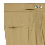 Attention to detail is the prominent feature of these stylish, tan pleated trousers. Made in the UK from one hundred per cent cotton, the high waist and self supported waistband, in keeping with the original DAKS style, give the wearer comfort and confidence for an undeniably elegant appearance.