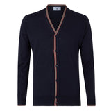 DAKS X JOHN SMEDLEY HOUSE STRIPE CARDIGAN - NAVY