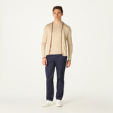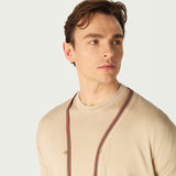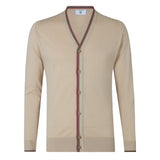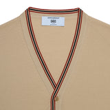 DAKS X JOHN SMEDLEY HOUSE STRIPE CARDIGAN - ALMOND