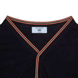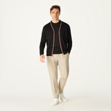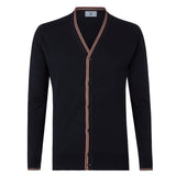 DAKS X JOHN SMEDLEY HOUSE STRIPE CARDIGAN - BLACK