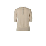 DAKS X JOHN SMEDLEY HOUSE STRIPE COLLARED TOP -ALMOND