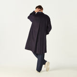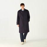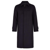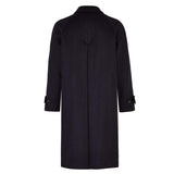 Look the pinnacle of sartorial elegance yet feel comfortable and protected from the elements in this longer length navy blue overcoat in the classic Kensington style by Chrysalis. Featuring a concealed centre front placket with eco horn buttons, inverted pleat swing back, raglan sleeve and button cuff adjusters that is half lined. Made in the UK with British fabric from Moon that is a combination of wool, cotton and cashmere, this is a luxurious collaboration between two heritage brands that ensures the highest of quality.