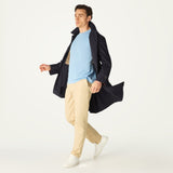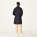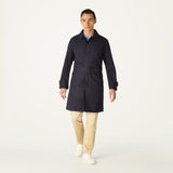 Our iconic House Trench has all the DAKS brand hallmarks of a wardrobe staple, with House Check printed under collar, vicuna viscose twill sleeve lining, House Check cupro half lining and classic shoulder detail. Made from one hundred percent breathable silk touch cotton fabric, the piece is understated yet with a plethora of functional features, such as an inverted pleat swing back and adjustable belted waist for comfort and ease of movement, high collar to protect against the elements, two handy button closure welt pockets and oversized cuff adjusters. In addition to this, it features bio resin horn buttons that are neatly disguised away under the concealed placket and a storm flap at the back, all of which make it ideal for the work commute.