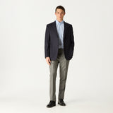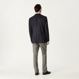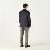 An indisputably highly refined garment with half canvas, sleeve and butterfly lining in house vicuna colour and under collar melton detail. Made by Tollegno in Italy, largely from ultra fine 3D wool, this navy piece is a highly desirable, English fit with the softness of Italian tailoring that emanates quality for any occasion.