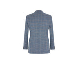 This is a lightweight open weave hopsack jacket with a rustic yellow over check. This is the perfect summer jacket that can be styled both for formal and casual occasions. This is a classic single-breasted jacket with 8cm notch lapels, two-button fastening and straight front flap pockets.We think this jacket looks great paired with a our grey archive wide leg trousers, white t-shirt and sleeveless cashmere sweater, as seen on the model.