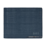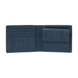 Classic bifold navy black leather wallet with four credit card slots, full-length pocket for bank notes and coin compartment. This wallet features aN embellished silver-foil DAKS logo on the exterior with decorative House Check strip.