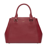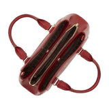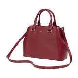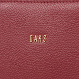 This is a classic city tote bag in maroon light grain red leather. This bag features three seprate zips to the interior compartments, perfect for everyday amenities and essentials. A classic boxy design, this bags features both a top handle and detachable shoulder strap with decorative gold-fold embellished DAKS logo.
