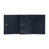 This is an elegantly understated navy blue foldover purse on the outside with a large slip pocket on the reverse ideal for receipts and notes. The Lottie opens to reveal a surprisingly spacious and well organised concertina style interior, featuring five credit card slots, a slip pocket and a zipped central coin pocket.