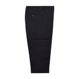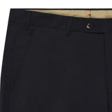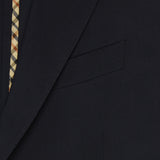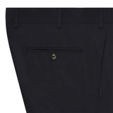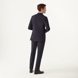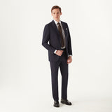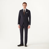 This ultra lightweight woollen suit is an undisputed wardrobe staple. Woven from the finest Italian cloth, this suit is comprised of a rich navy weave with that of a plain weave structure, producing a delicate and intricate composition. This is a classic single-breasted suit with 8cm notch lapels, a two-button fastening with straight front flap pockets. The trousers are a classic fit flat fronted style.