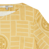 The short sleeve double D icon dress features a monogram print that was developed from the DAKS interlocking archive DD.