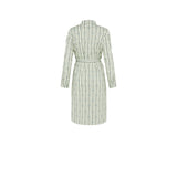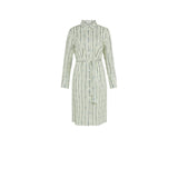 The dress features long sleeves with a classic shirt collar and is paired with a coordinating printed belt.