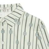 The staggered stripe print gives a fresh, yet commercial aesthetic.