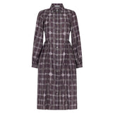 Look chic in this classic shirt style dress with a button down fastening of grey shell made in Spain buttons, collar and long gathered sleeves with gentle cuffs. An easy wearing silhouette covered in the graphic floral design created by our in-house print team at our design studio in London. The luxurious soft silk blend fabric is printed in Italy and the dress is made in the UK. It sits at a mid-length and with the fabric gathering around the waistband, it encapsulates a perfect shape.