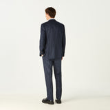 This polished navy pinstripe single breasted suit has been designed for a more relaxed silhouette, giving a modern classic look. Made in Italy from a cotton and wool blend fabric, this blazer features a notch lapel, soft shoulder pads, flap pockets, full lining and half canvas. An English fit combines with the softness of Italian tailoring and AMF stitching to create added comfort and quality, accentuated by the new flannel development which is lightweight with added stretch.