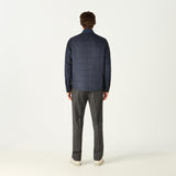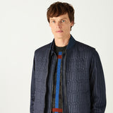 Ever versatile, this piece is a high quality navy blue, lightweight quilted gilet featuring our exclusive DAKS D Chain logo print throughout. Designed to be worn layered up, with a ribbed collar, double ended zip fastening, 2 welt side pockets with snap fastening and internal zip pocket, this garment is perfect for winter walks and country strolls.