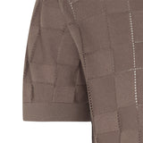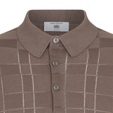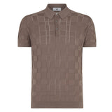 DAKS X JOHN SMEDLEY POINTELLE HOUSECHECK POLO SHIRT - BEIGE
