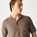 DAKS X John Smedley Pointelle Housecheck Polo Shirt - Beige