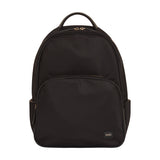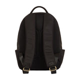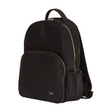 The Osborne is a modern commuter backpack, made of a durable polyester and leather mix in black. The backpack includes embellished gold logo and zip round detail to interior
